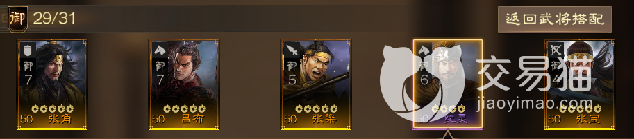 阵容五:张角+吕布+张梁+纪灵+张宝。