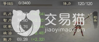 该武将的智力值与统帅值都很不错,成长性较高,但是武力值比较拉胯,旗下兵种为奇兵,是近战类型的武将,该武将的定位为内政官,不过其智力的表现,也可以作为辅助型武将出战。