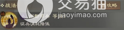 该武将携带的战法为州郡领兵,在委任内政官的时候,能够减少预备兵资源的百分比消耗,最多能够减少百分之一,虽然不高,但是聊胜于无,毕竟消耗的资源种类很多,其特性是在委任求贤阁的时候能够提升寻访的速度。