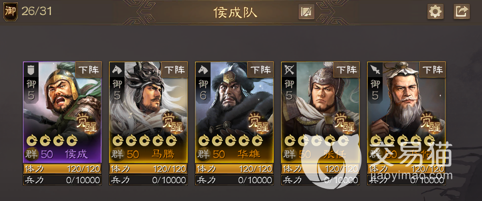 阵容一:侯成+马腾+华雄+张任+华佗。