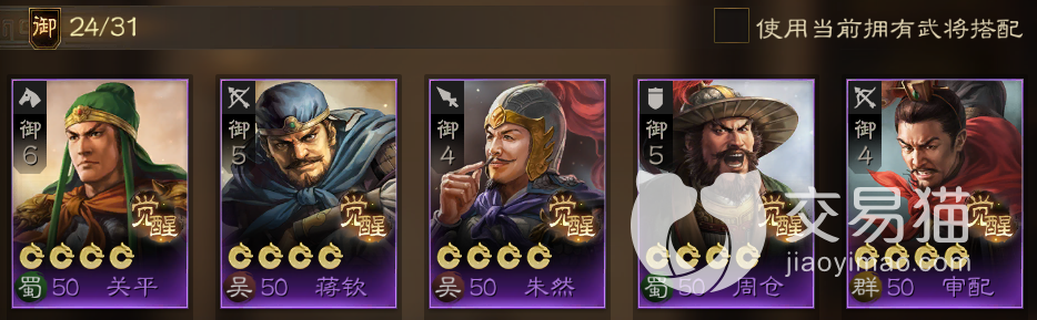 阵容五:关平+蒋钦+朱然+周仓+审配。