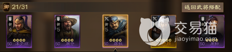 阵容一:淳于琼+周仓+蒋钦+严颜+周鲂。