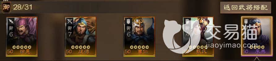 阵容五:徐晃+庞德+曹仁+甄氏+李典。