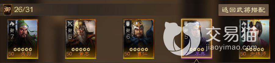 阵容二:关羽+黄忠+曹仁+李典+步练师。