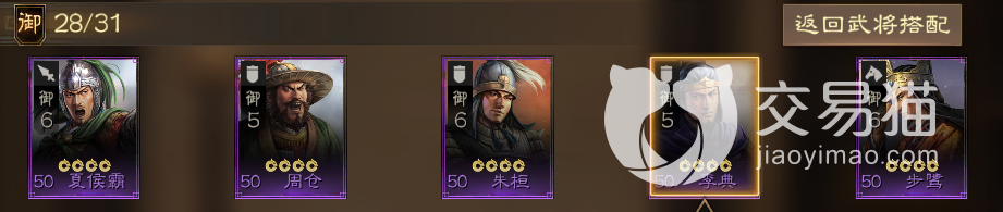 阵容三:夏侯霸+周仓+朱桓+李典+步骘。