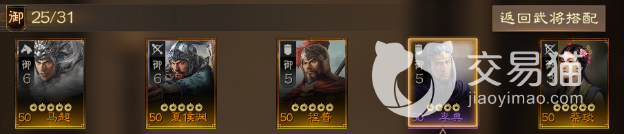 阵容一:马超+夏侯渊+程普+李典+蔡琰。