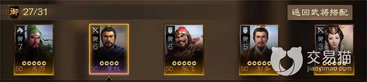 阵容五:关羽+黄权+张飞+刘备+甘式。