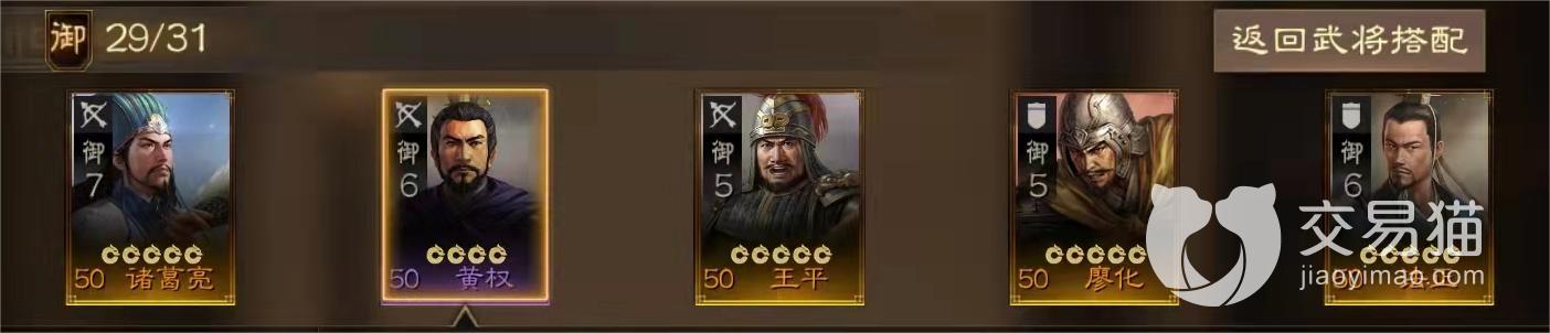 阵容四:诸葛亮+黄权+王平+廖化+法正。