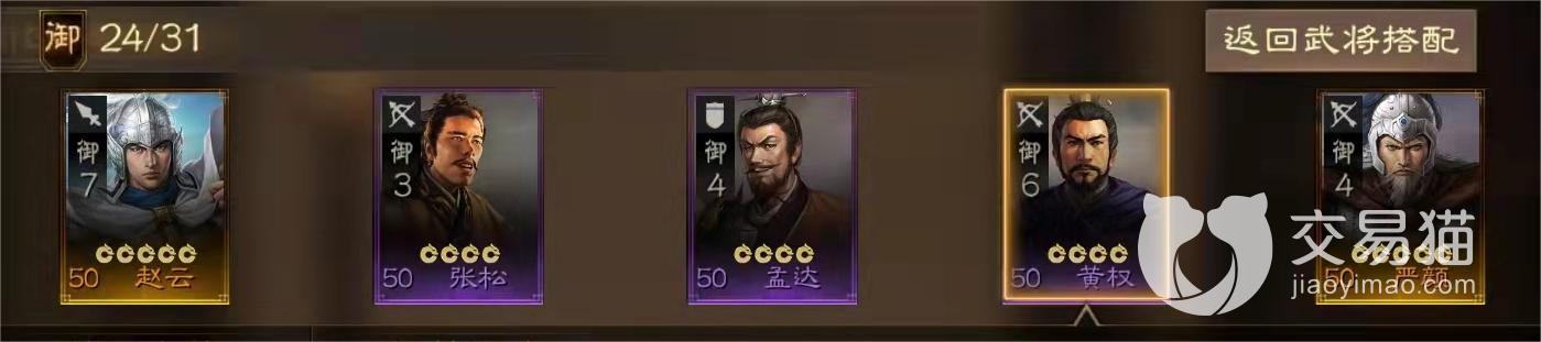 阵容一:赵云+张松+孟达+黄权+严颜。