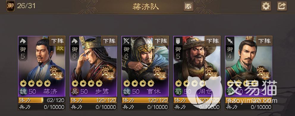 那么关于“三国志战棋版蒋济阵容搭配推荐”的内容到这里就全部结束了,上述这五套阵容都是比较适合蒋济的存在,蒋济在这些阵容中的作用本身还是旁敲侧击的补一些谋略伤害,而像蒋济这类的练兵型武将其实还有不少,如果你想了解更多有关他们阵容搭配的内容,就请继续关注豌豆荚app吧!