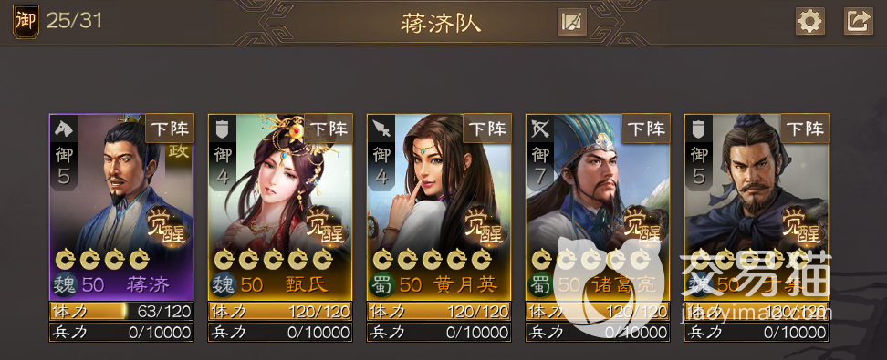 阵容一:蒋济+甄氏+黄月英+诸葛亮+于禁。