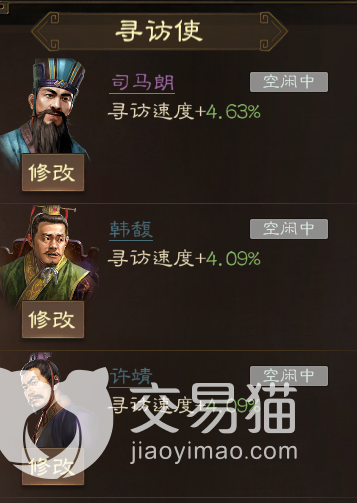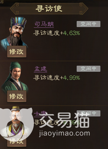使用这两人的话,寻访速度也会与之前那套不相上下,因为他们在紫卡中魅力算得上拔尖的,较之刚才提到的王粲和石韬都要更强,不过考虑前者有着专门增益寻访速度的战法,因此整体速度肯定还是比不过他们,但孟建与士燮能分别在武将和装备的获取概率给予提升,这个收益对于玩家来说会更加直观。