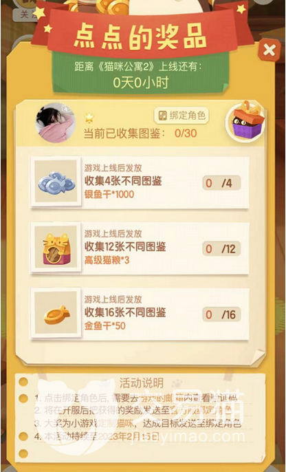 想要获取定制猫猫,玩家们一定要先进行绑定,并且解锁更多的任务模式。我们需要打开猫咪公寓2的小程序,在其中点击绑定角色,这里会需要我们输入验证码。同时还得输入对应的用户编码,在完成了绑定的操作之后,然后就可以开始定制猫咪了,后续我们的账号也会收到猫猫,直接在邮件领取就好。