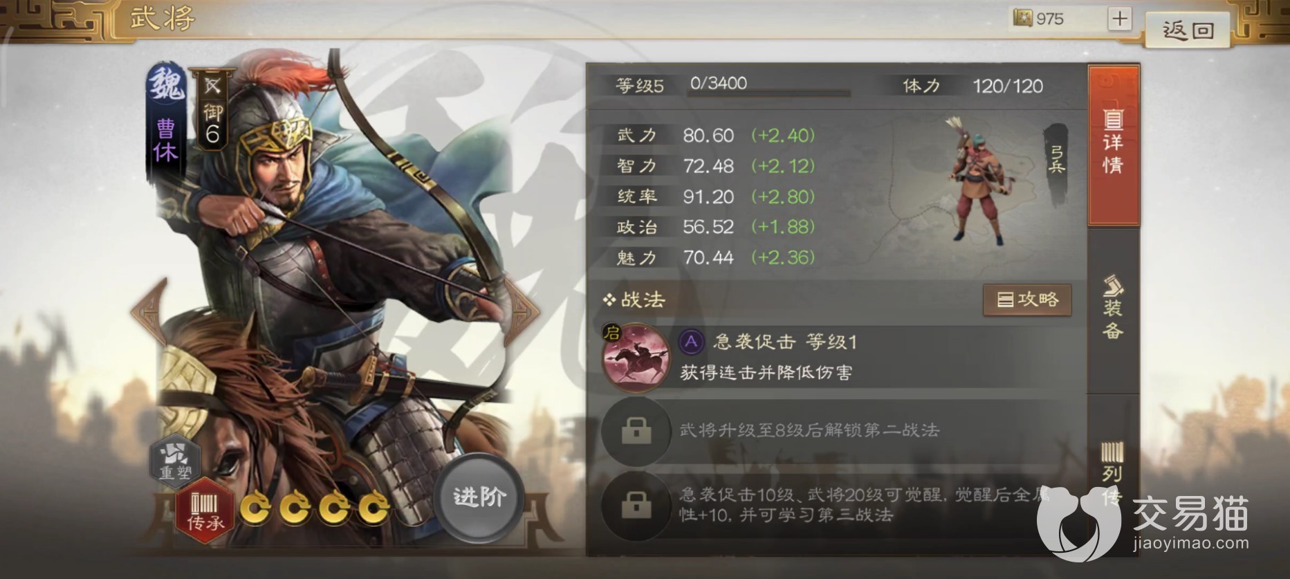 单从战法特性与属性就不难看出她是一个纯输出的枪兵,无视地形绝活在一些关卡中能发挥妙用,例如绕过障碍直接单切被地形掩护的对面脆皮谋士、奶妈。