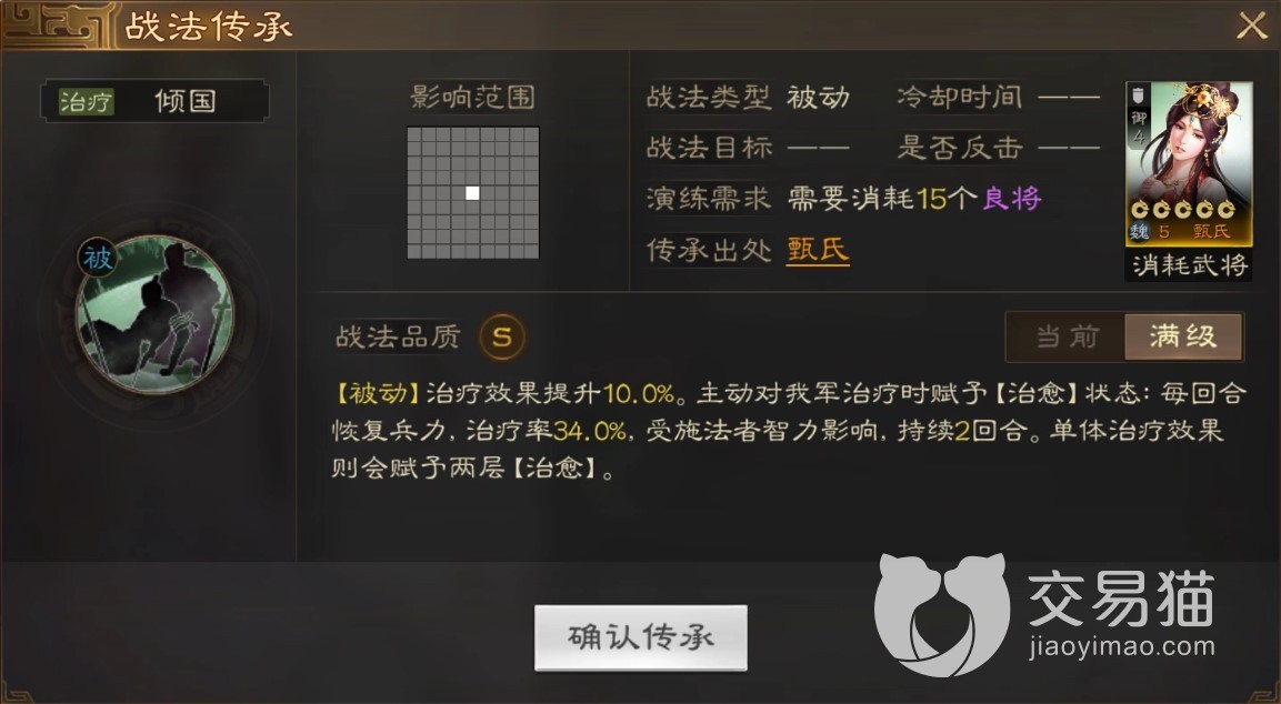 理想情况下还有第3个战法用华佗,在行动结束之后能给附近百分比最低的单位恢复兵力驱散debuff。这样一来甄姬群奶单奶都有了,360度无死角奶。