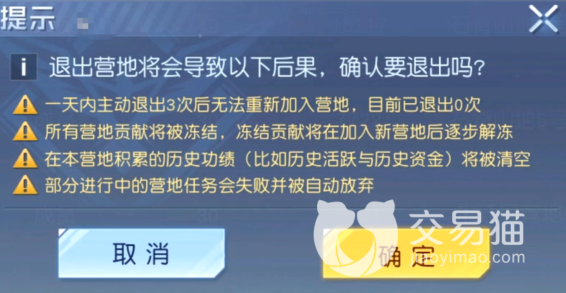 如果你只是随便加入的话只要找到这个营地名字选择离开就可以,只要点一下立刻就能离开这里了非常的简单只是离开之后还是会受到一定程度的惩罚的,比如如下图所示的惩罚,会无法使用营地的任何东西失去所有的权限。