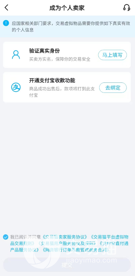 3、当然,并不是所有用户在注册之后都可以直接发布商品了,作为严肃的账号交易平台,每一个人在发布商品之前,都必须去开通卖家身份。关于身份的整体认证流程,大家只需要按照系统的提示来完成即可,随后平台就会快速进行审核,各位因此才能解锁发布各种交易信息的功能。