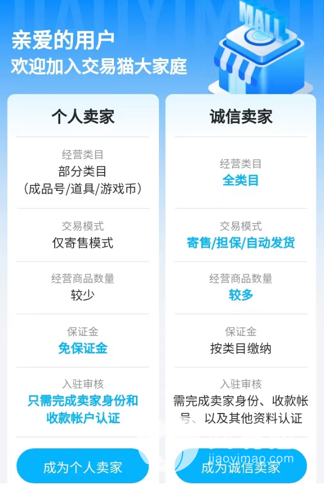 3、成功得到了想要的价值区间之后,玩家们就可以在平台当中申请开通卖家身份了。注意的是,日后如果大家想要在平台内处理游戏号的话,没有此身份的加持各位将无法成功发布商品,所以提前开通一个也将帮助大家后期更有效率的来处理自己的游戏号。