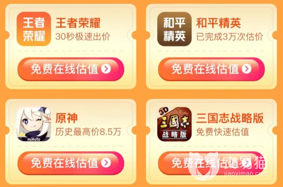 一个新玩家刚进入王者的时候,自身账号内的角色较少,同时也没有太多的皮肤,此阶段的账号价值就会很低。但随着各位参与的比赛次数增加,后期解锁的角色、皮肤会快速增加,尤其是账号段位的提升,综合价值会迅速攀升。此时,不了解行情的各位,就可以直接来到交易猫app当中体验一下针对账号的估值了。