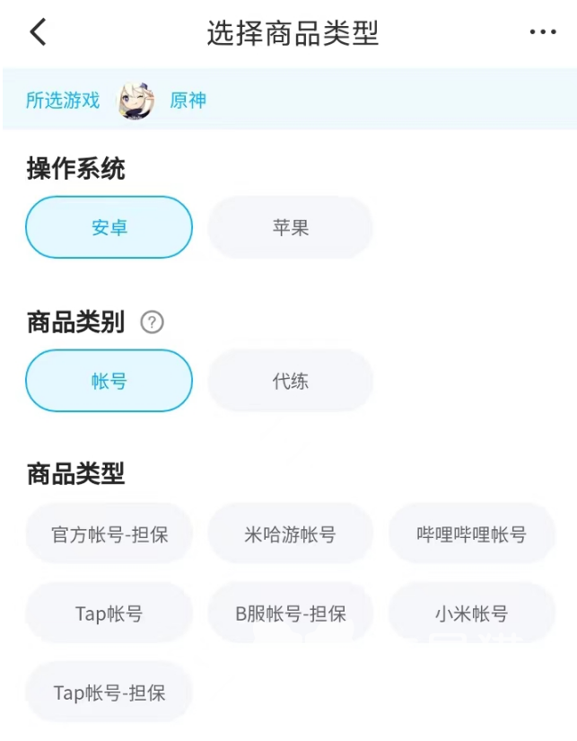 3、同时,由于原神这款游戏包含了多个渠道服,所以想要完成出售的话,也需要在平台支持的情况下才行。目前很多不正规的平台无法支持全部的渠道游戏号,而刚好交易猫app为大家解决了这一问题,各种类型的商品都将在发布页当中根据玩家的实际情况来做出选择。