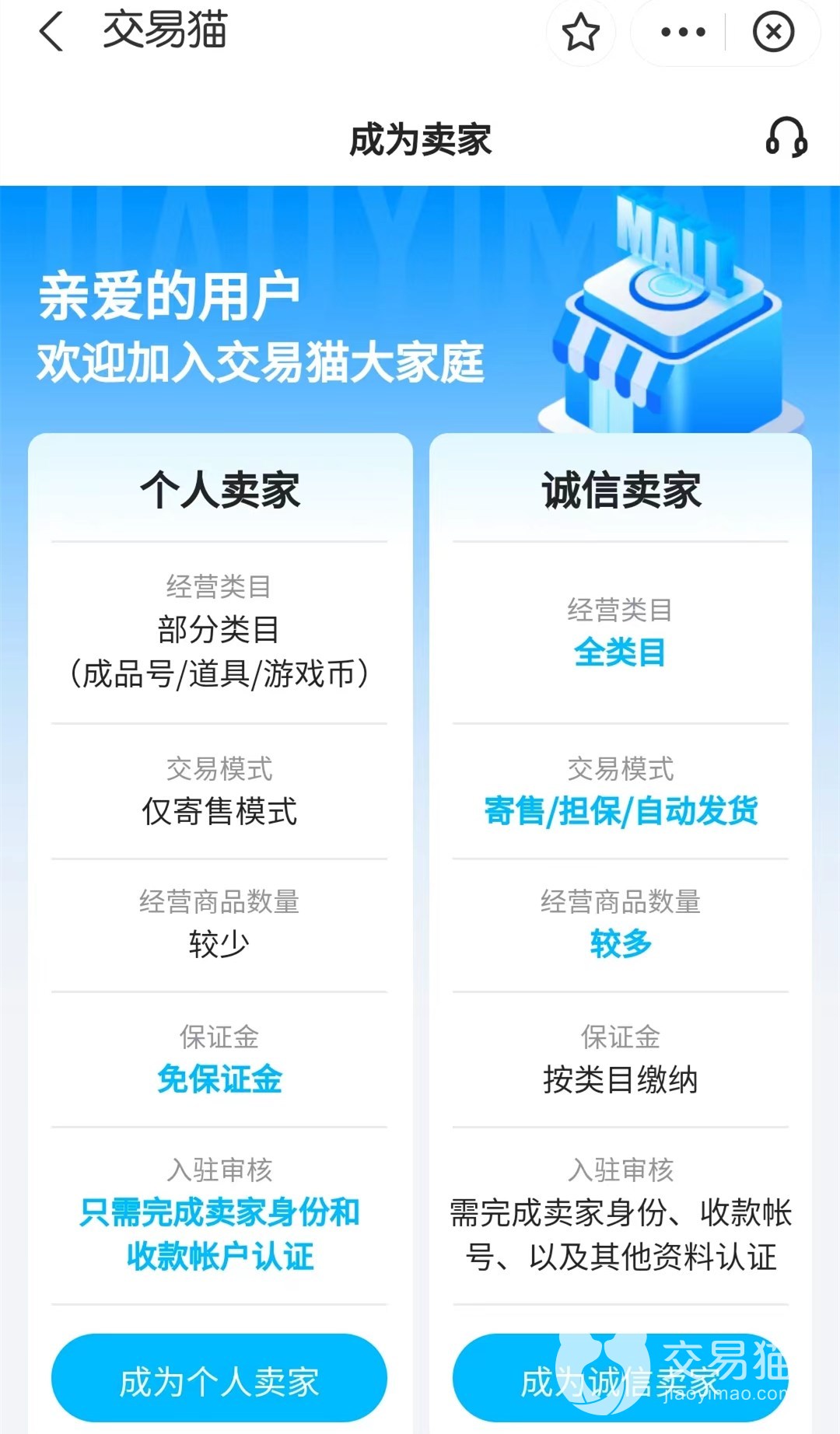 首先是当你登录交易猫平台以后,需要注册成为卖家,你可以选择个人卖家或者是诚信卖家,小编在这里建议大家还是选择诚信卖家,你想想,如果是你买东西的话,是不是也更倾向于诚信卖家的商品呢;注册完成以后就可以上架商品了,这一步是很简单的,只要根据平台提示进行操作就可以了,之后只要你选择第三方平台验号,平台发货这些,基本就不用你操心了,等待平台发给你的消息就可以了。