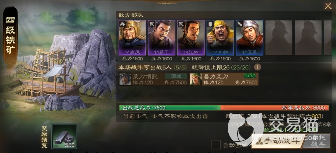 大多时候菜刀流用于4级地开荒,是一种全输出的暴力菜刀队,靠着把堆输出堆到最大,然后第一个回合就将对面威胁最大的单位直接毙掉,所谓的最好的防守就是进攻。保持尽可能低的战损是前期开荒很重要的思路,选择一些难度低的敌方守军,性价比收益更高。损耗的兵力后面都要招募回来,因此为了避免损耗虐菜是必须的。在对四级地发动进攻之前,先看看当前队伍实力是否稳健,能够在很低战损的情况下完成开荒。武将等级尽量在12级及以上,自带的战法至少5级,携带的第一个战法至少3级,单个武将带队兵力至少1500,这些条件都满足就能放心迎敌了。