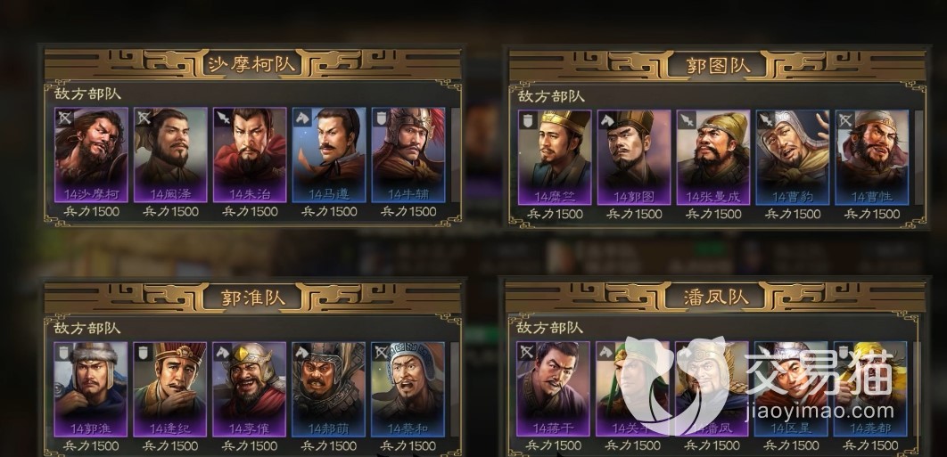 在确定了我们的阵容搭配后,还要看看四级地里面敌军的情况,目前的4级地敌人大多是下面这四个阵容。1、潘凤队,这个队伍输出蛮高的,3个紫将的爆发都不错,如果我方输出可以在前期秒掉其中一个,就会很容易许多。2、沙摩柯队,这套阵容的输出很高,但整体其实偏脆,只要输出上去了就好打了,不足的话战损就多了。3、郭淮队,输出不多,只要前排坦克位能抗住就好打很多。4、郭图队,偏脆皮,输出也一般,可以比较快的清场。