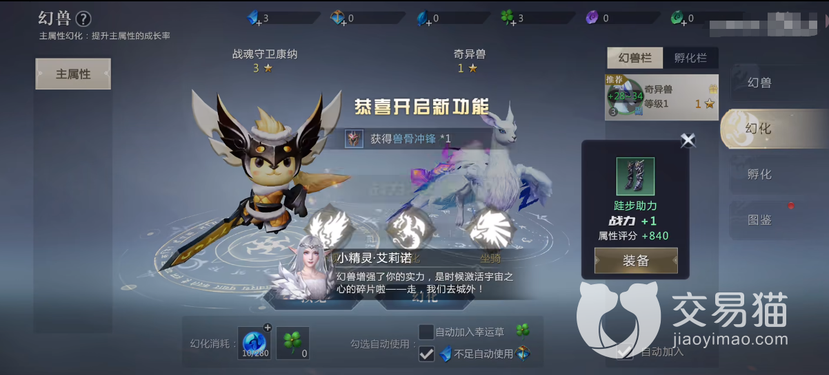每个玩家都是可以携带幻兽的,可以理解为宝宝,能够帮助自己进行战斗。一般新手玩家都是在商人那里获取,通过购买得到。将幻兽蛋孵化出来之后,可以得到一个自动拾取,并且增加自身攻击的小宠物。这个小小宠物可是发挥着巨大作用,不仅降低了副本难度,还可以节省下来拾取道具的时间,而且萌萌的非常可爱,当然是越早获得越好了。