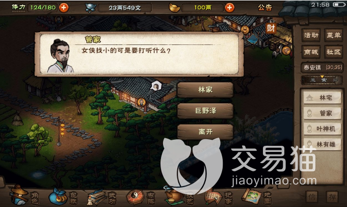 这款手游难度属于中等水平,但很多人都在即墨老酒这个地方停滞不前,始终找不到通往下一关的钥匙,即墨老酒到底在哪个地方售卖?怎么才能得到它?进入游戏界面以后,大家首先要根据地图标识找到泰安镇酒楼,这家客栈出售即墨老酒。