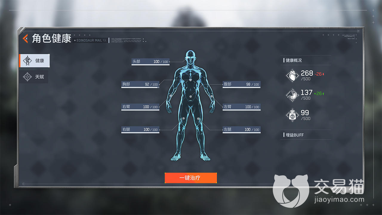 在代号x的世界中,玩家都拥有一套完整的健康系统,这个系统不仅能影响玩家的行动速度,还会影响存活时间,因此需要时刻保持自己的健康值处于正常状态,这套健康系统包括了头部,胸部,右臂等,十分还原了野外生存的真实性,体验感会更加不错。
