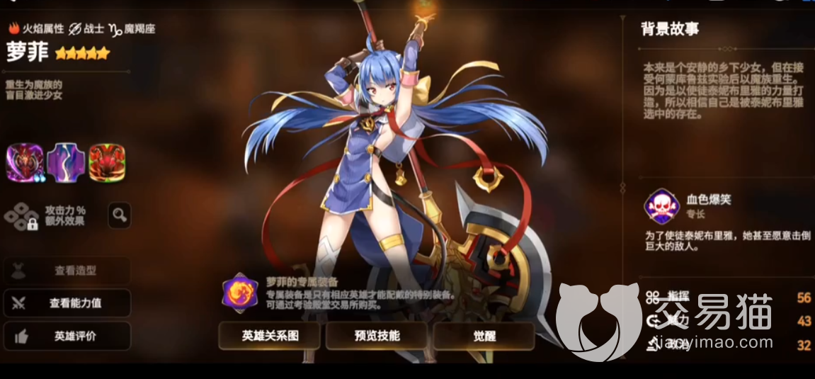 1、一技能:萝菲的一技能是一个标准的1.0伤害单体攻击,但是效果却是十分的精彩。有35%的概率造成1回合的弦晕,同时还能带来接近50%的吸血效果,以及获得30点斗志。烧两个魂可以大幅度提升输出的倍率,通常情况下伤害是不烧魂的2.5倍,但是不能触发夹攻。S1有两个专属,一个是40%概率解除自己一个debuff,另一个是70%概率对目标造成1回合禁强化效果。这两个效果都很有用,大家可以根据需求来进行选择。小编个人是比较喜欢解debuff这个效果的,因为可以靠这个来解掉控制,避免发生被敌人连续控制的情况。