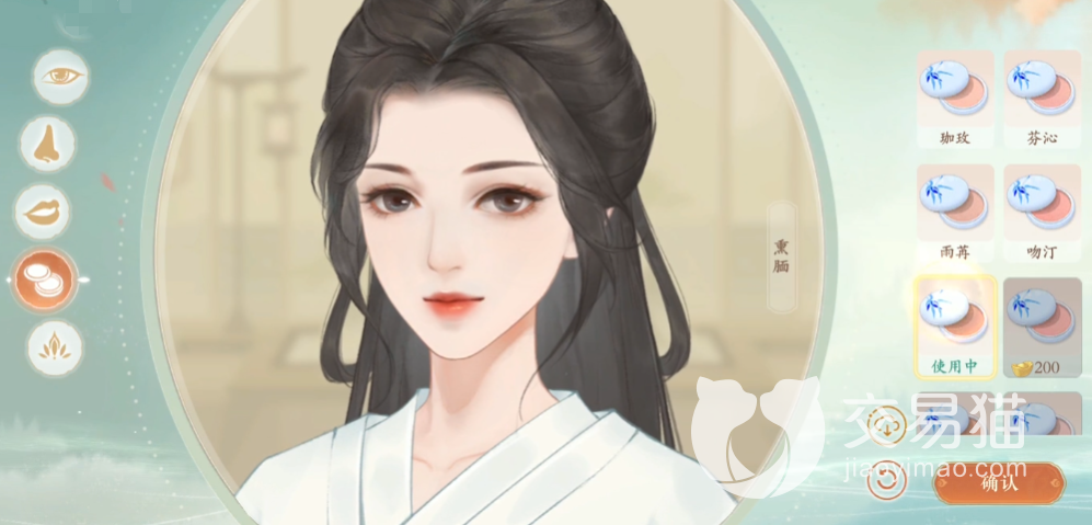 2、英姿飒爽搭配:装饰(卿瑛)、眼眶(鹊桥)、眼睛(墨染)、鼻子(兰俏)、嘴唇(艳卿)、胭脂(加瑰)、眉毛(平川)。