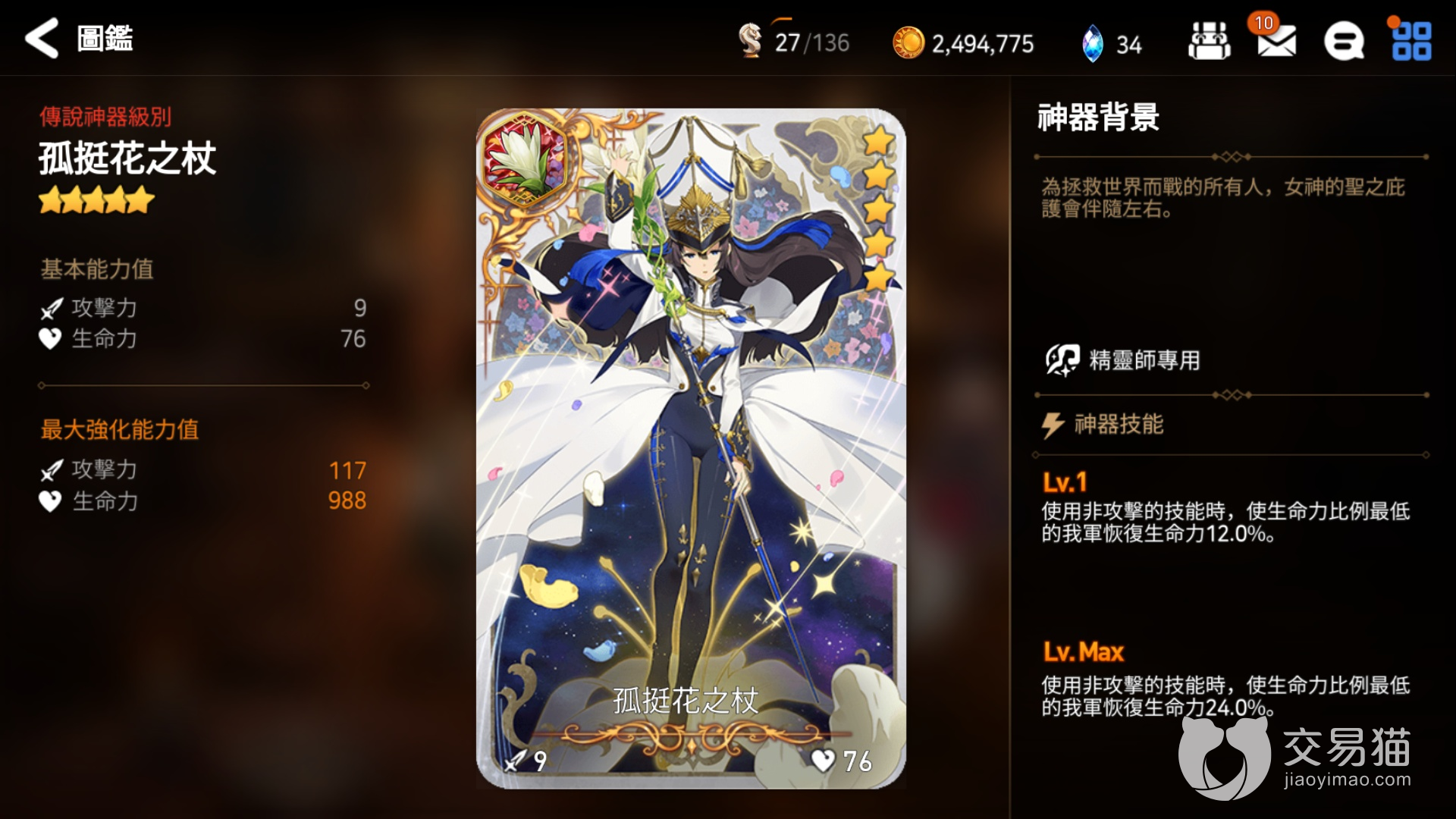 4、伊埃罗小提琴:如果是以PVP竞技为主,那么这个是最为合适的。这个去上效果,使其作为防守来说是非常使用的,基本上是竞技场必不可少的存在。