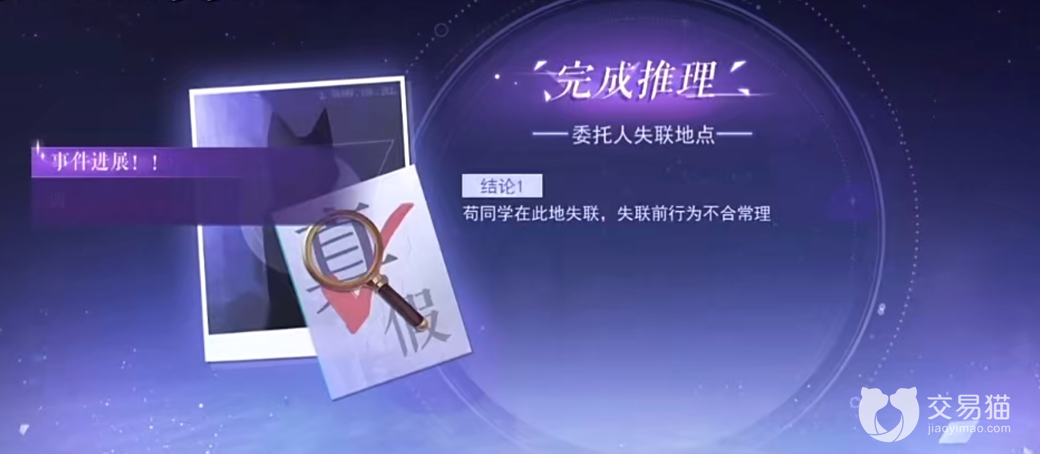 不过,单单凭借这些已知线索,玩家还尚未知道真相,必须得自行推理,将所有的线索联系起来,从而得知苟同学失踪与他的传家宝物有关,虽然其身份不明,但是值得猜测与苟同学失踪脱不了关系。