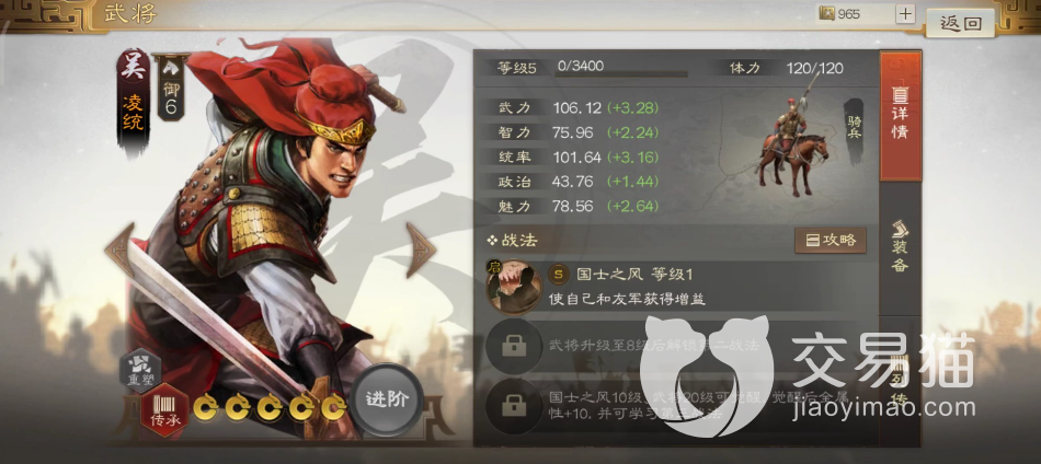 首先凌统在游戏中有着很高的成长属性,并且他的初始属性中的武力在所有的武将中都是很高的,而凌统的战法能够让自身有着很高的行动能力,能够尽快的打出先手伤害,同时增益效果的战法能够让周围的队友获得增益效果来提升伤害和行动能力。
