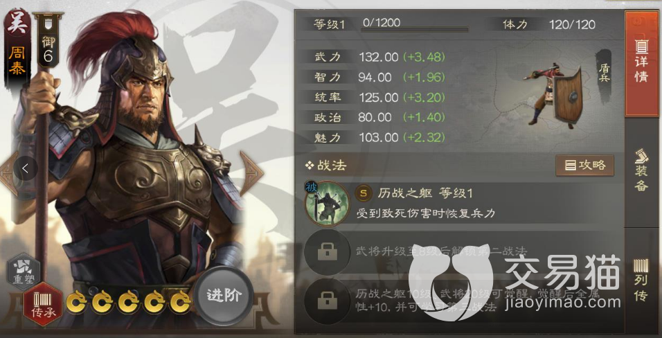而周泰作为队伍中的核心主要是负责吸收伤害,因为输出武将的血量通常是比较低的,因此在攻击的时候同样会受到反击伤害,而周泰的战法可以帮助友军来承担队友受到的伤害,因此让输出型武将能够打出更多的伤害。