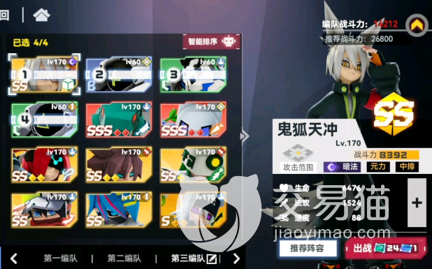 给鬼狐天冲搭配阵容时,必须安排单体攻击实力强的角色,才能拉起整个战队的实力,其最佳搭配阵容为鬼狐天冲、格瑞、牧天使、卡米尔以及银爵,在这组阵容中,鬼狐天冲可以获得25%的伤害加成,攻击力会有很好的提升,对拥有鬼狐天冲的玩家来说是个很不错的选择。