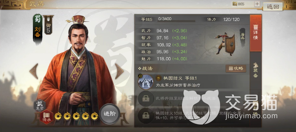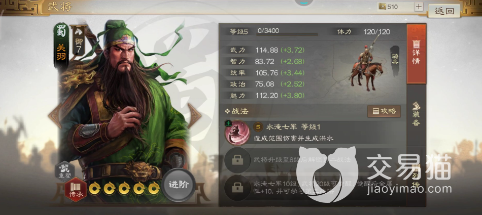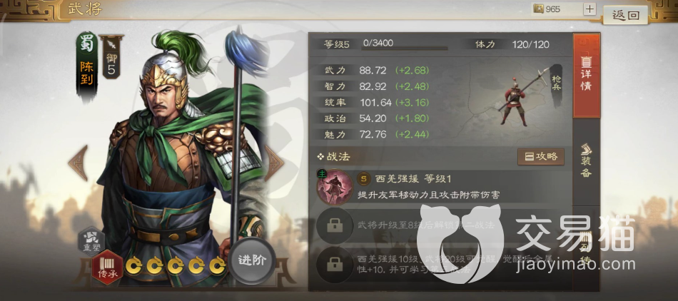 玩家想要了解一名武将,那么首先就需要通过他的属性面板来了解。首先他的武力是有88点的,属于一个较高的水平,而且所使用的是枪兵,一般在战场上可以作为中部来防止对方冲锋。因此作为队伍中的核心输出是没有问题的。