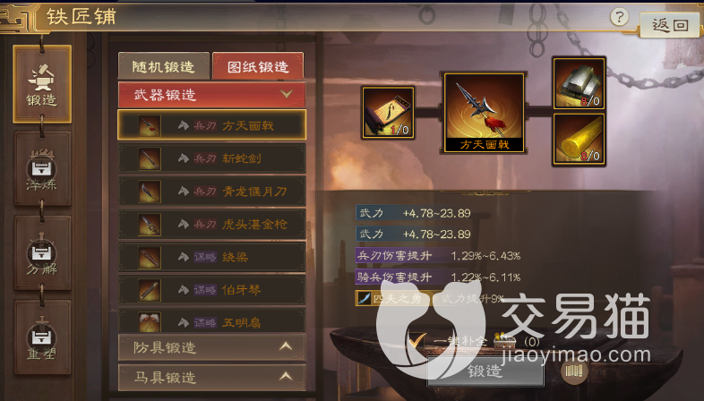 以上就是小编本期给大家带来的三国志战棋版铁匠铺攻略的全部内容了,大家快去游戏中收集材料,给自己喜欢的武将锻造装备吧,希望能够给大家带来帮助,感谢大家阅读。