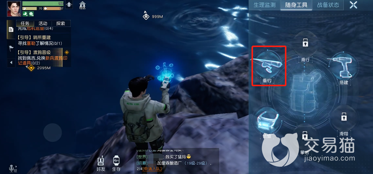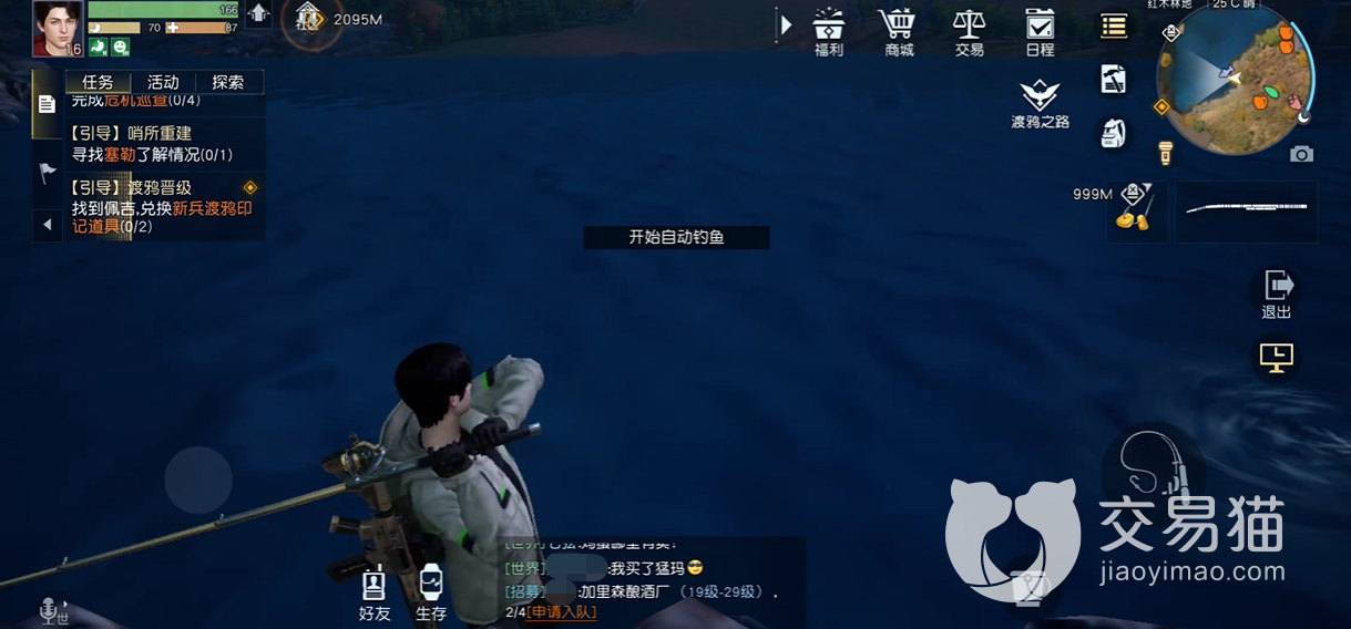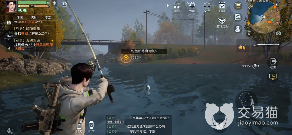 大家进入游戏的时候就会发现其实上面的钓鱼玩法已经解锁,并不需要大家去做什么任务来解锁钓鱼玩法,只不过有了技能大家也不能空手去钓,需要大家提前准备好钓鱼竿,以及鱼饵,然后到达支持钓鱼的水域旁边,这些工作都准备好了以后大家就可以去使用钓鱼竿啦。