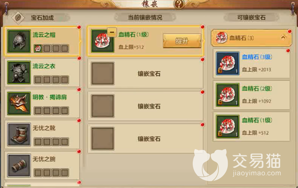 除了等级上升的强化方式之外,大家还可以利用镶嵌的玩法增加武器以及装备的属性值,这些属性值在为装备上升之后会直接反应到人物的防御以及攻击还有生命上哦,大家在镶嵌的时候肯定是镶嵌的宝石等级越高能够提升的属性就越多哦。