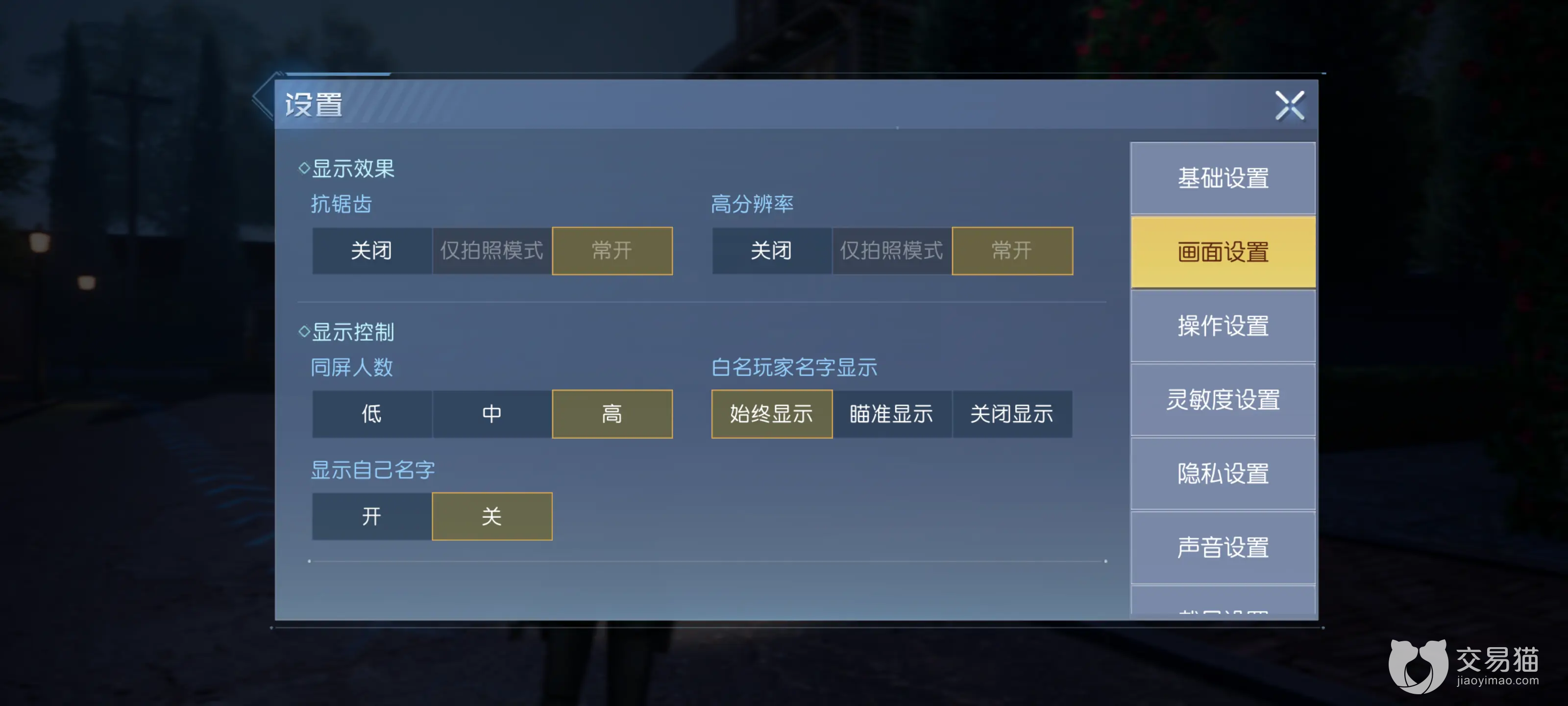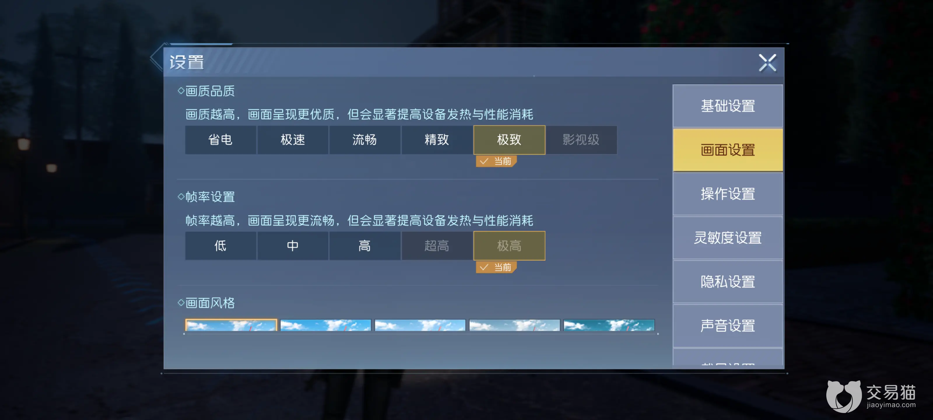 2、方法一基本是没有技术含量的,大家在进入设置界面后点击“画面设置”,在选择画质的时候要快速点击“超高”,这样就有几率锁定这个画质了。如果不成功的话多试验几次,或者是环网络好的环境测试。