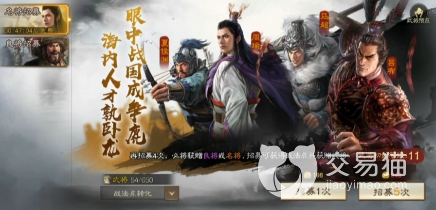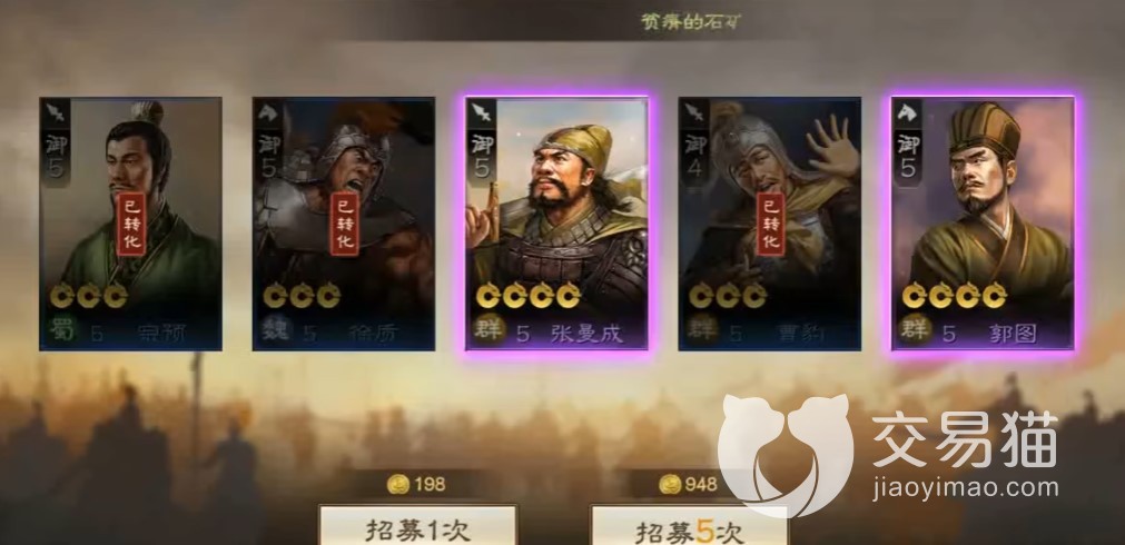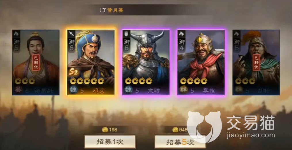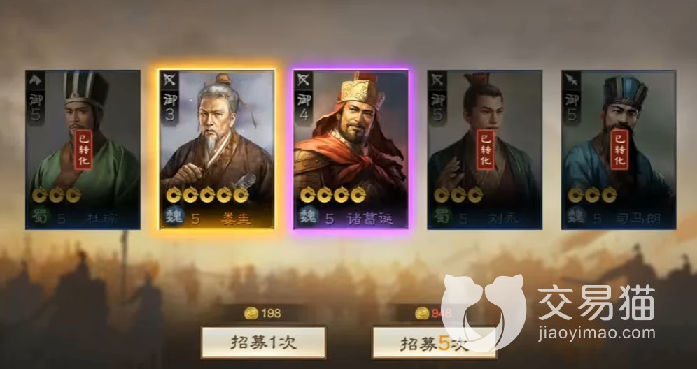 在游戏里有名将池和良将池,对应橙卡池和紫卡池,一般正式上线后还会有特定角色的概率up池,喜欢某个特定武将的话去抽对应池子会更容易出货。抽1次需要消耗198金铢或者1个招募信,5连抽则只要948金铢,从能省则省的角度来看,自然是五连更划算一些。
