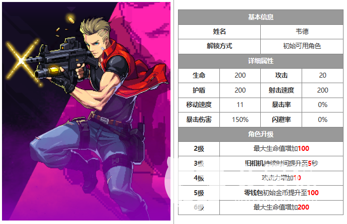 而韦德在游戏中不仅伤害非常好,而且他在游戏中的血量也要比其他的角色要后很多,最重要的是他还有闪避技能,能够在关键时间闪避敌人的攻击,当然这个操作队伍新手玩家可能会比较困难,如果在面对boss那种全屏攻击的技能的时候比较使用。这个角色的获得方式也是通过任务才能够获取。