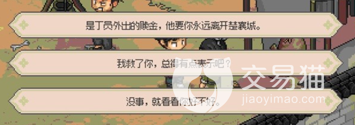 在路上闲逛的时候碰到混混可能会掉钱要注意一下,要是遇到壮汉的话就不要关,对话的选项都是带来负面效果的,在丁家的门口可以触发互动,然后得到武学秘籍,在脏街那边可以给云游商人互动,然后获取祛湿丸,吃了的话,大家会失去所有的钱,要注意。
