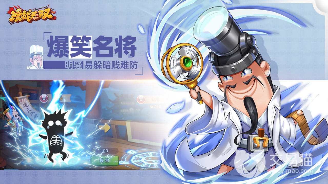 虽然画风独特,但是依旧保留了大量国风的内容,将不少的三国武将都进行了搞怪化,每一次战斗都能够让大家笑声不断,作为回合制游戏,队伍阵容搭配自然也是非常的具有特色的了,武将数量相当的多,能够让玩家搭配出各式各样的奇葩阵容,不论是献祭流还是奶妈流都能够看到,每一个武将都能够任意搭配技能,可以让玩家自由释放自己的脑洞。