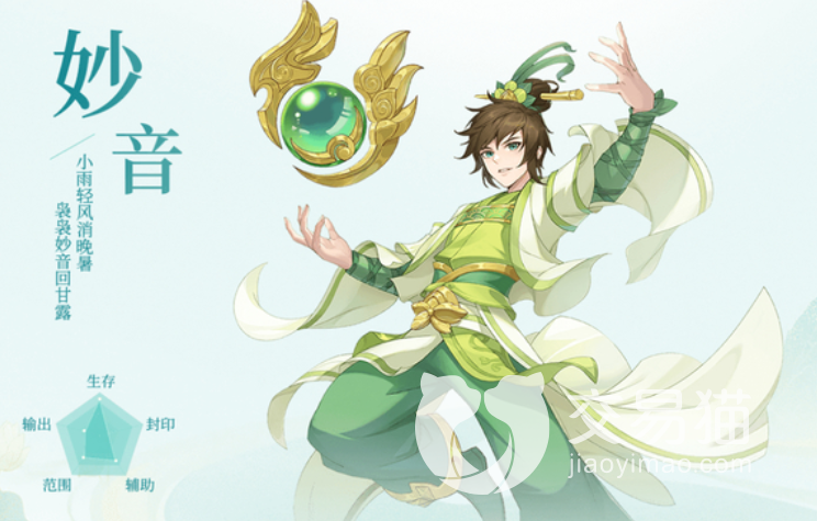 妙音:奶妈定位,治疗回血、免疫伤害还有加封印效果的技能都有,发冲冠可以为队友加攻击。
