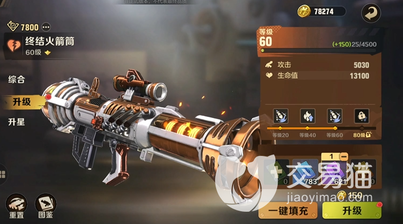 ①终结火箭筒:它属于橙色品质武器,有着较大的攻击范围与伤害,而且本身所提供的攻击与血量加成也是一流的,并且相比其他重武器,它的重量还算可以,玩家可以扛着它边走边打,射击过后产生的爆炸也能造成可观伤害。