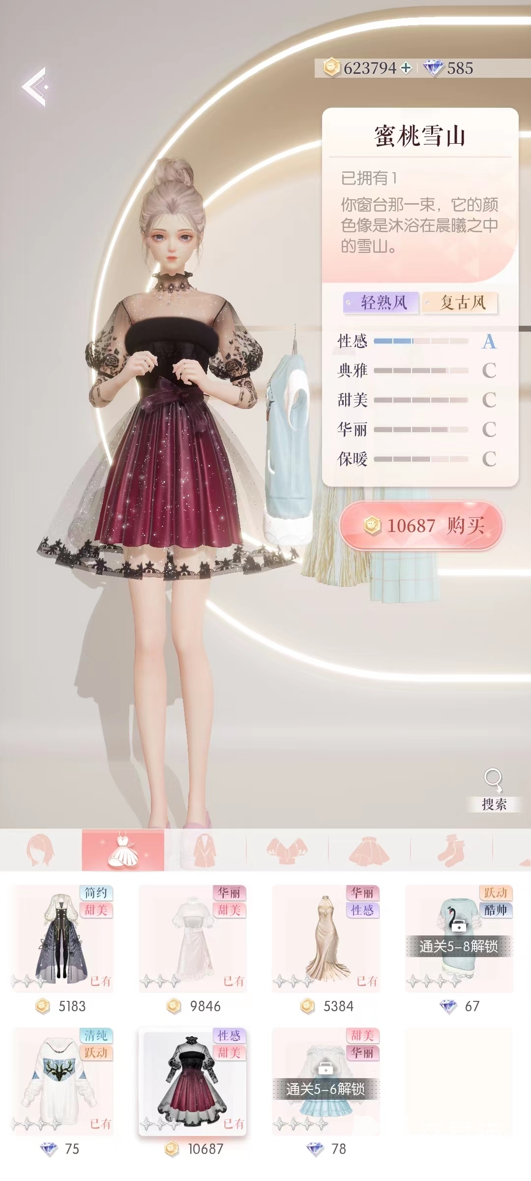 游戏的每一章主线都会解锁一套服装,玩家可以自己收集材料制作,只有把这套服装全部制作出来和完成所有的关卡挑战才能进入下一章。而且主线任务里的每一个小关卡,挑战成功后都有机率掉落服装。掉落的服装星级很低,一般都是用来制作其他服装的材料。