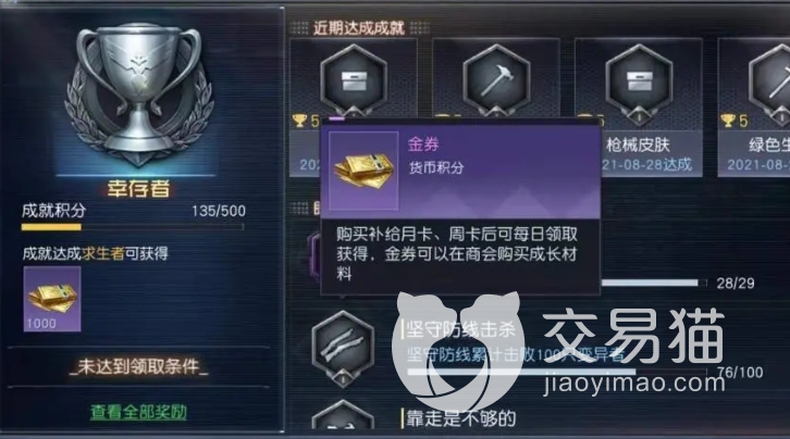 它的主要获取方法其一靠游戏玩家的充值返利以及月卡补给等氪金手段获得,比如说月卡,周卡等等,如果购买了光靠每天签到就能领取大量的该货币,另外,充值到一定阶段也可以获得它的返利。其二,它的获取方法就是玩家们达成一定的成就,可以领取大量的金券,比如说完成了获得500家具的成就可以获得10金券,玩家们靠这样的方法来获取。但总归来说,大多数玩家还是比较建议靠氪金或许比较好,因为做成就太慢了。